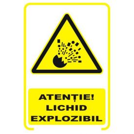 Semne si indicatoare / Placute de avertizare / Placuta indicatoare de securitate de avertizare, atentie, lichid explozibil, Onsec, 200x300 mm, autocolant vinyl, 0.07 mm