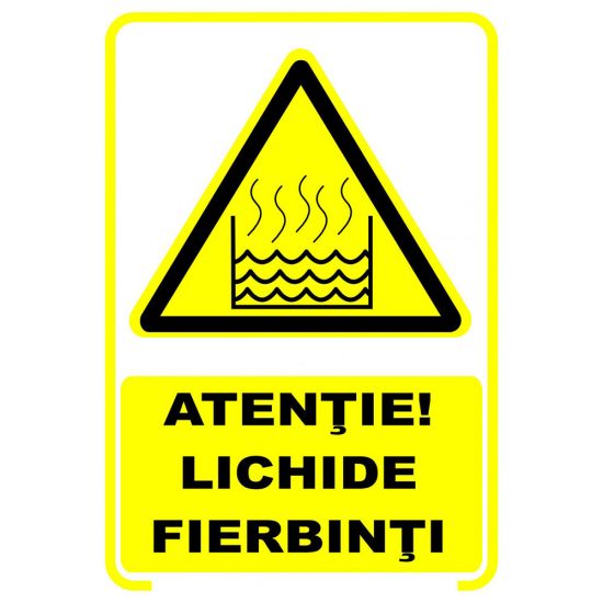 Semne si indicatoare / Placute de avertizare / Placuta indicatoare de securitate de avertizare, atentie, lichide fierbinti, Onsec, 200x300 mm, PVC, 3 mm