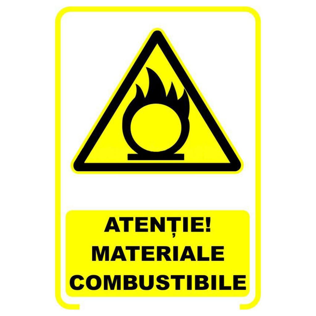 Placuta indicatoare de securitate de avertizare, atentie, materiale combustibile, Onsec, 200x300 mm, PVC, 3 mm
