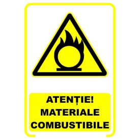 Semne si indicatoare / Placute de avertizare / Placuta indicatoare de securitate de avertizare, atentie, materiale combustibile, Onsec, 200x300 mm, PVC, 3 mm