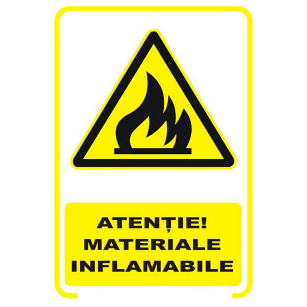 Semne si indicatoare / Placute de avertizare / Placuta indicatoare de securitate de avertizare, atentie, materiale inflamabile, Onsec, 200x300 mm, PVC, 3 mm