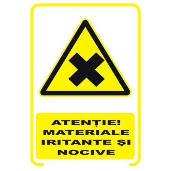 Placuta indicatoare de securitate de avertizare, atentie, materiale iritante si nocive, Onsec, 200x300 mm, PVC, 1 mm