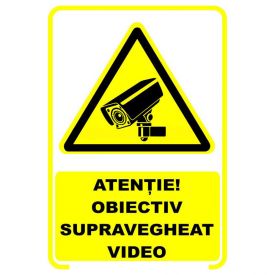 Semne si indicatoare / Placute de avertizare / Placuta indicatoare de securitate de avertizare, atentie, obiectiv supravegheat video, Onsec, 200x300 mm, autocolant vinyl, 0.07 mm