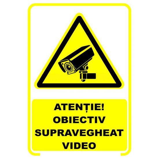 Placuta indicatoare de securitate de avertizare, atentie, obiectiv supravegheat video, Onsec, 200x300 mm, PVC, 3 mm