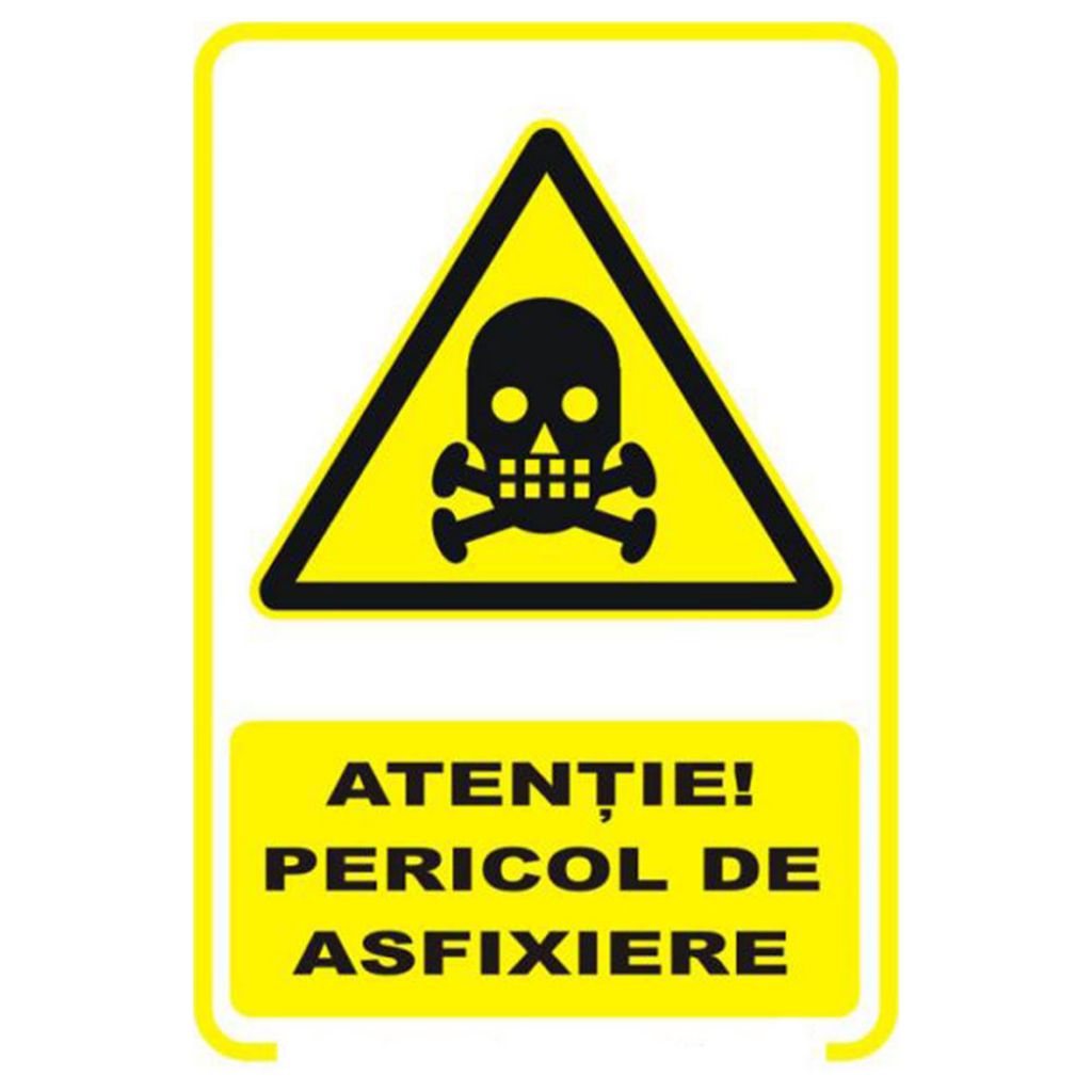 Placuta indicatoare de securitate de avertizare, atentie, pericol de asfixiere, Onsec, 200x300 mm, PVC, 1 mm.