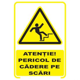 Semne si indicatoare / Placute de avertizare / Placuta indicatoare de securitate de avertizare, atentie, pericol de cadere pe scari, Onsec, 200x300 mm, autocolant vinyl, 0.07 mm