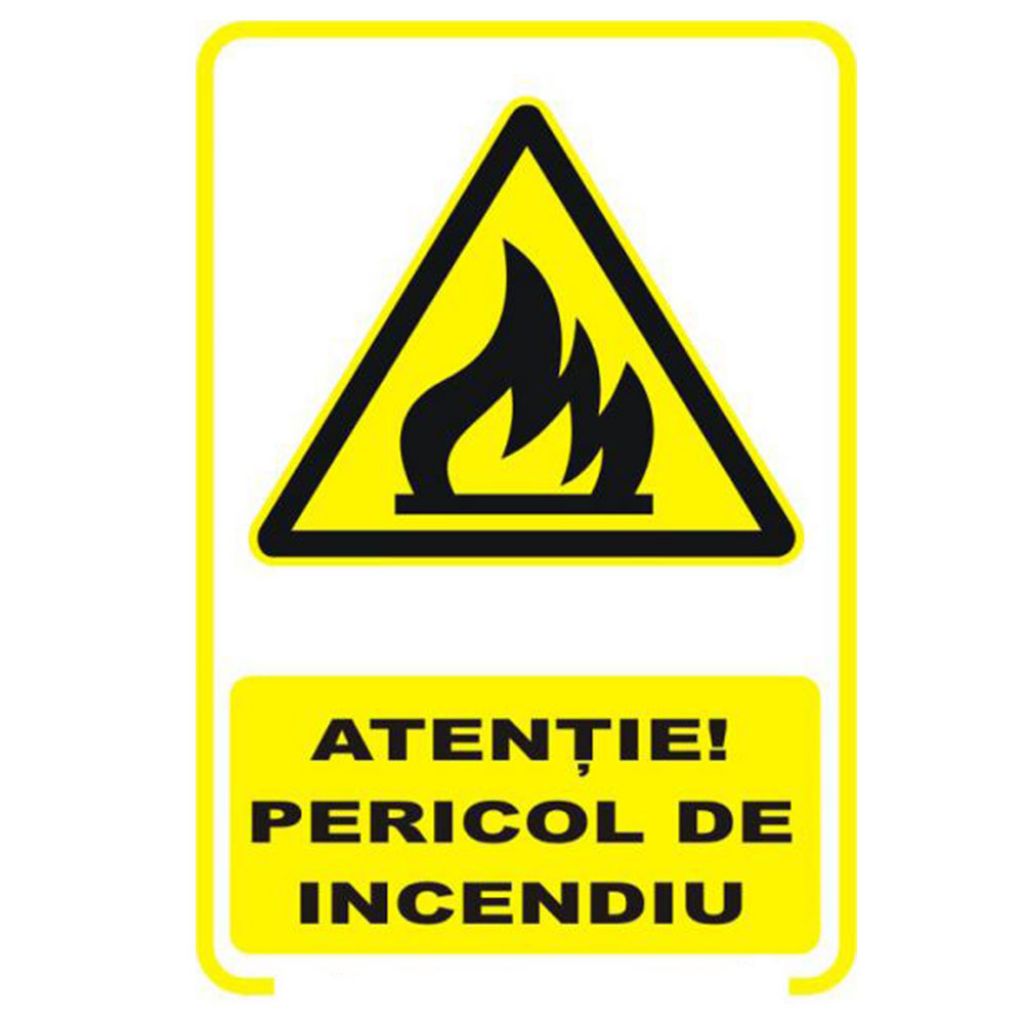 Placuta indicatoare de securitate de avertizare, atentie, pericol de incendiu, Onsec, 200x300 mm, PVC, 3 mm