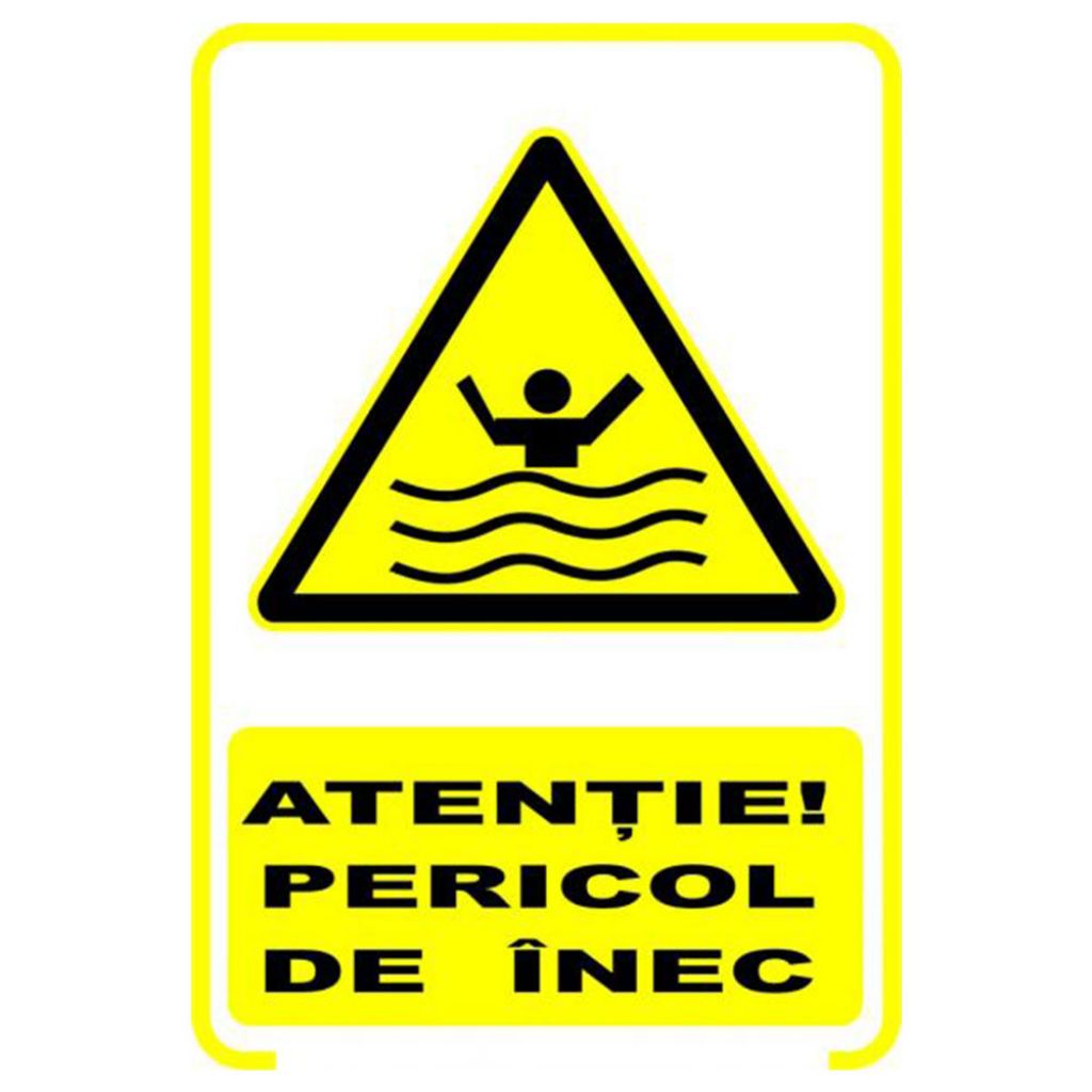 Semne si indicatoare / Placute de avertizare / Placuta indicatoare de securitate de avertizare, atentie, pericol de inec, Onsec, 200x300 mm, autocolant vinyl, 0.07 mm