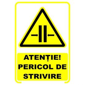 Semne si indicatoare / Placute de avertizare / Placuta indicatoare de securitate de avertizare, atentie, pericol de strivire, Onsec, 200x300 mm, PVC, 1 mm