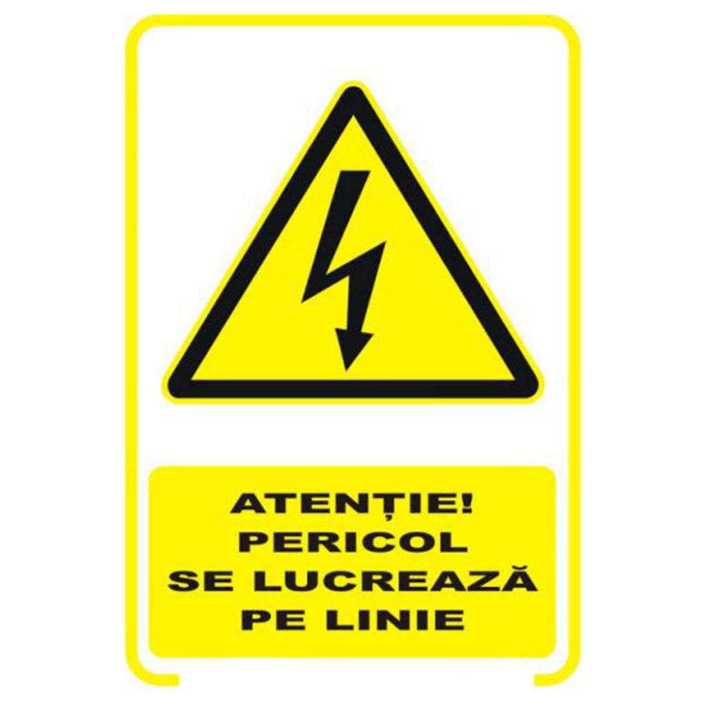 Semne si indicatoare / Placute de avertizare / Placuta indicatoare de securitate de avertizare, atentie, pericol, se lucreaza pe linie, Onsec, 200x300 mm, PVC, 3 mm