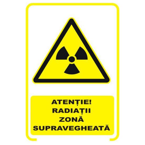 Semne si indicatoare / Placute de avertizare / Placuta indicatoare de securitate de avertizare, atentie, radiatii zona supravegheata, Onsec, 200x300 mm, autocolant vinyl, 0.07 mm