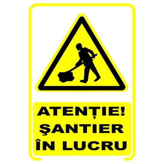 Semne si indicatoare / Placute de avertizare / Placuta indicatoare de securitate de avertizare, atentie, santier in lucru, Onsec, 200x300 mm, autocolant vinyl, 0.07 mm