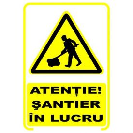Semne si indicatoare / Placute de avertizare / Placuta indicatoare de securitate de avertizare, atentie, santier in lucru, Onsec, 200x300 mm, PVC, 1 mm