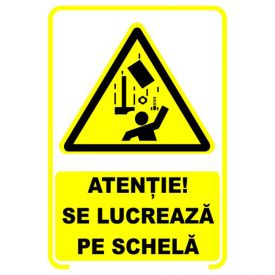Semne si indicatoare / Placute de avertizare / Placuta indicatoare de securitate de avertizare, atentie, se lucreaza pe schela, Onsec, 200x300 mm, autocolant vinyl, 0.07 mm