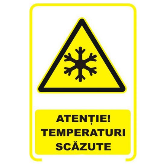 Placuta indicatoare de securitate de avertizare, atentie, temperaturi scazute, Onsec, 200x300 mm, PVC, 1 mm.
