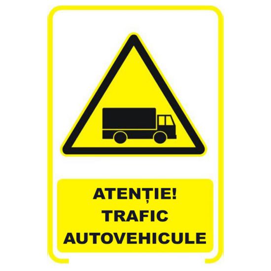 Semne si indicatoare / Placute de avertizare / Placuta indicatoare de securitate de avertizare, atentie, trafic autovehicule, Onsec, 200x300 mm, PVC, 1 mm