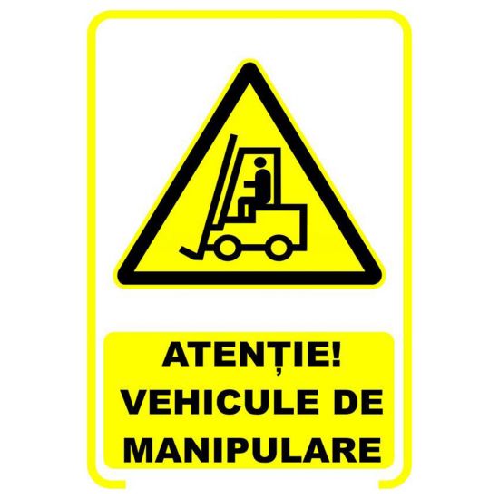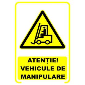 Semne si indicatoare / Placute de avertizare / Placuta indicatoare de securitate de avertizare, atentie, vehicule de manipulare, Onsec, 200x300 mm, PVC, 1 mm