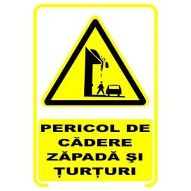 Semne si indicatoare / Placute de avertizare / Placuta indicatoare de securitate de avertizare, pericol de cadere zapada si turturi, Onsec, 200x300 mm, PVC, 3 mm