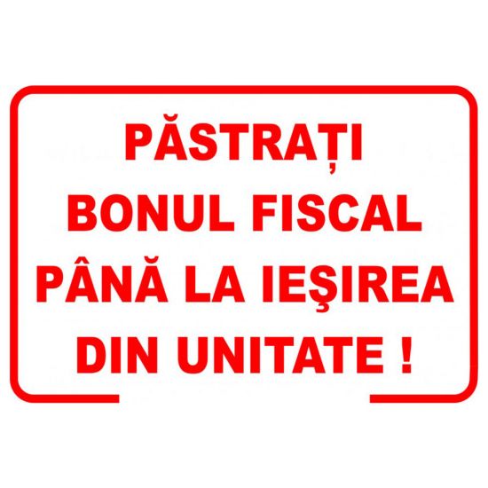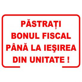 Placuta indicatoare de securitate de informare generala, pastrati bonul fiscal pana la iesirea din unitate, Onsec, 200x300 mm, autocolant vinyl, 0.07 mm