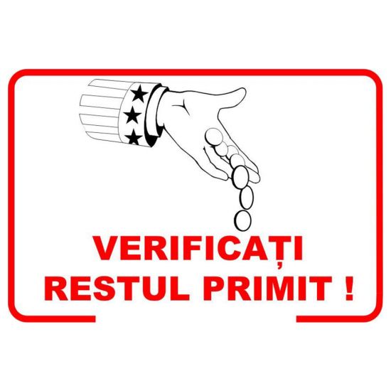 Placuta indicatoare de securitate de informare generala, verificati restul primit, Onsec, 200x300 mm, autocolant vinyl, 0.07 mm