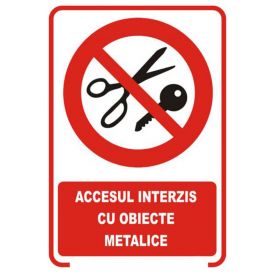 Placuta indicatoare de securitate de interzicere, accesul interzis cu obiecte metalice, Onsec, 200x300 mm, autocolant vinyl, 0.07 mm