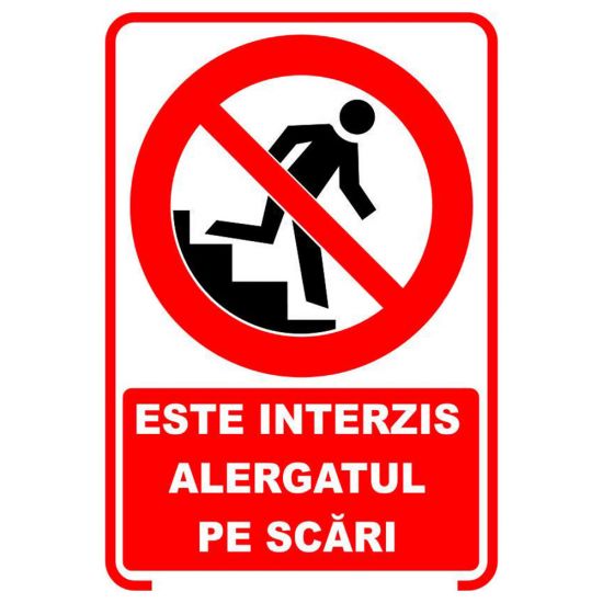 Placuta indicatoare de securitate de interzicere, este interzis alergatul pe scari, Onsec, 200x300 mm, autocolant vinyl, 0.07 mm