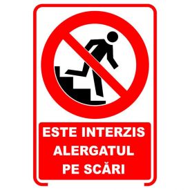 Semne si indicatoare / Placute de interzicere / Placuta indicatoare de securitate de interzicere, este interzis alergatul pe scari, Onsec, 200x300 mm, autocolant vinyl, 0.07 mm