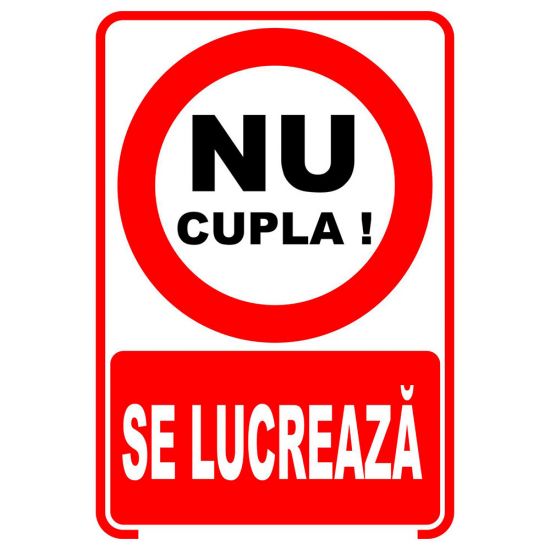 Placuta indicatoare de securitate de interzicere, nu cupla, se lucreaza, Onsec, 200x300 mm, autocolant vinyl, 0.07 mm