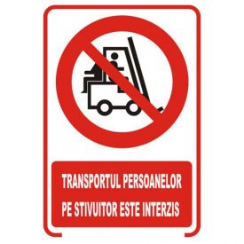 Semne si indicatoare / Placute de interzicere / Placuta indicatoare de securitate de interzicere, transportul persoanelor pe stivuitor este interzis, Onsec, 200x300 mm, autocolant vinyl, 0.07 mm