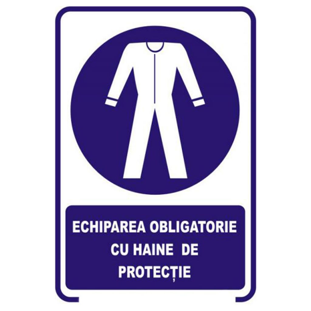 Semne si indicatoare / Placute de obligativitate / Placuta indicatoare de securitate de obligativitate, echiparea obligatorie cu haine de protectie, Onsec, 200x300 mm, autocolant vinyl, 0.07 mm