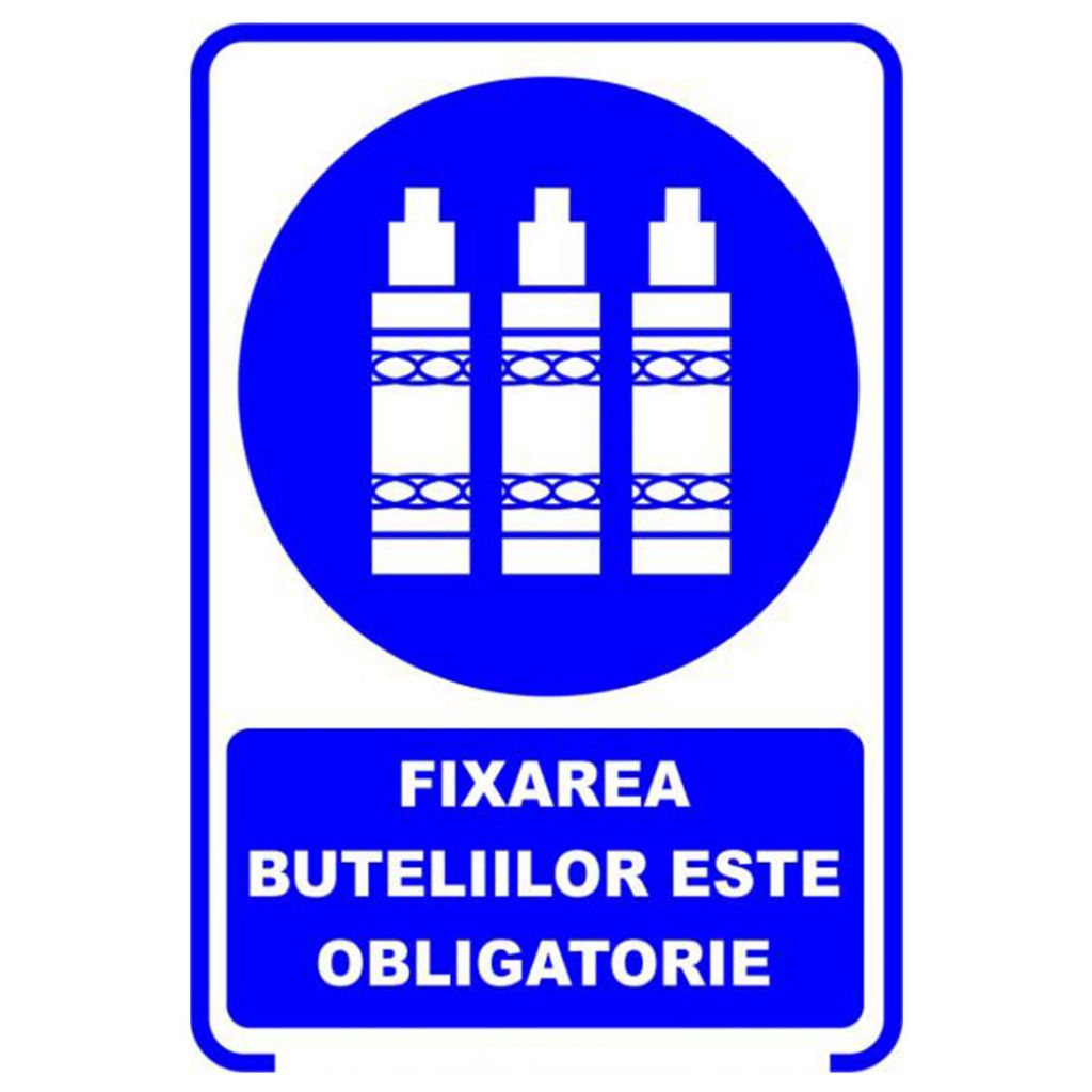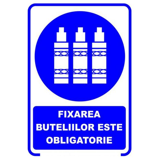 Placuta indicatoare de securitate de obligativitate, fixarea buteliilor este obligatorie, Onsec, 200x300 mm, PVC, 1 mm