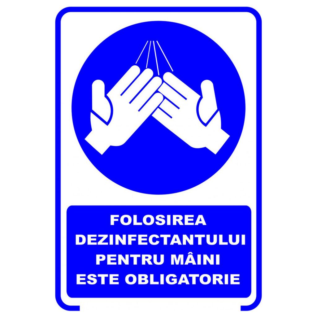 Semne si indicatoare / Placute de obligativitate / Placuta indicatoare de securitate de obligativitate, folosirea dezinfectantului pentru maini este obligatorie, Onsec, 200x300 mm, PVC, 3 mm