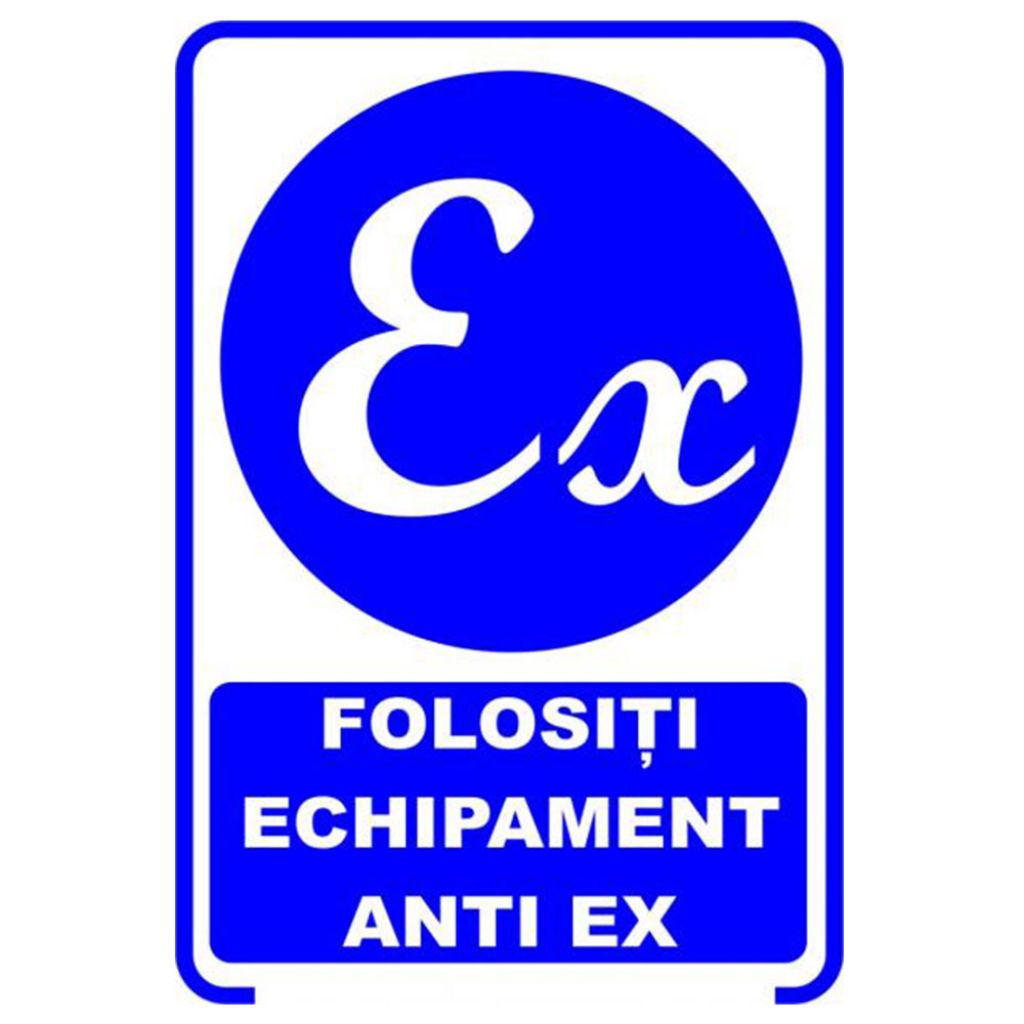 Semne si indicatoare / Placute de obligativitate / Placuta indicatoare de securitate de obligativitate, folositi echipament anti ex, Onsec, 200x300 mm, autocolant vinyl, 0.07 mm