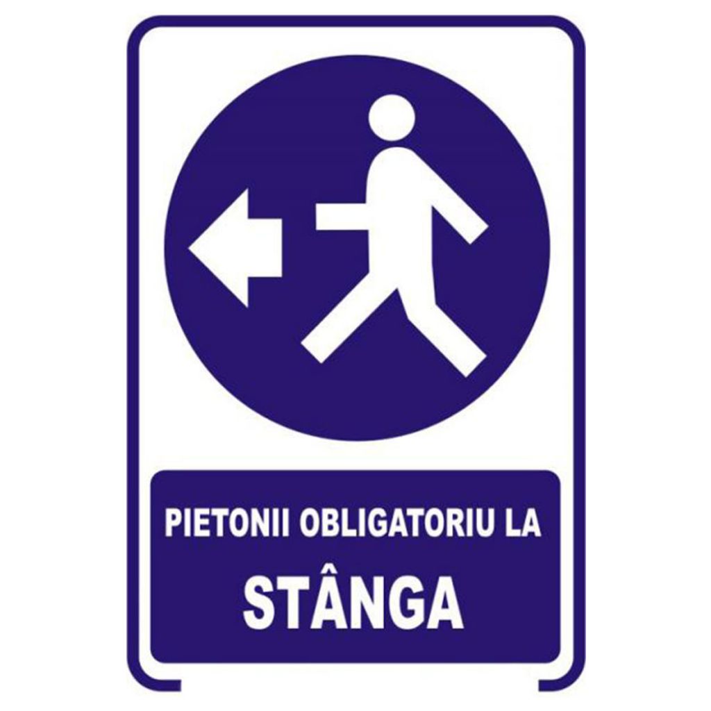 Semne si indicatoare / Placute de obligativitate / Placuta indicatoare de securitate de obligativitate, pietonii obligatoriu la stanga, Onsec, 200x300 mm, PVC, 1 mm