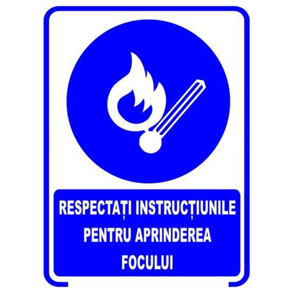 Semne si indicatoare / Placute de obligativitate / Placuta indicatoare de securitate de obligativitate, respectati instructiunile pentru aprinderea focului, Onsec, 200x300 mm, autocolant vinyl, 0.07 mm