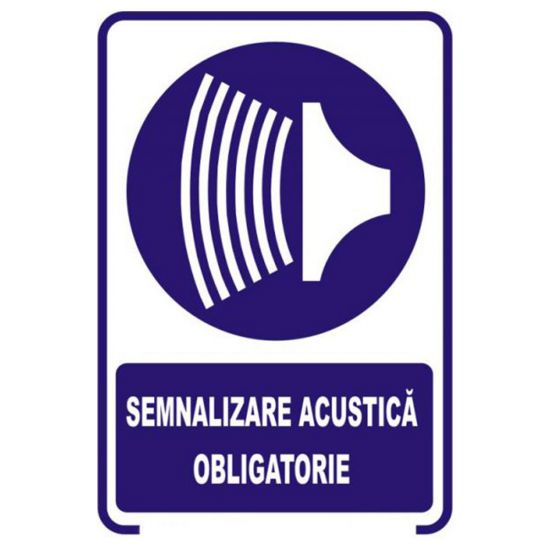 Placuta indicatoare de securitate de obligativitate, semnalizare acustica obligatorie, Onsec, 200x300 mm, PVC, 1 mm