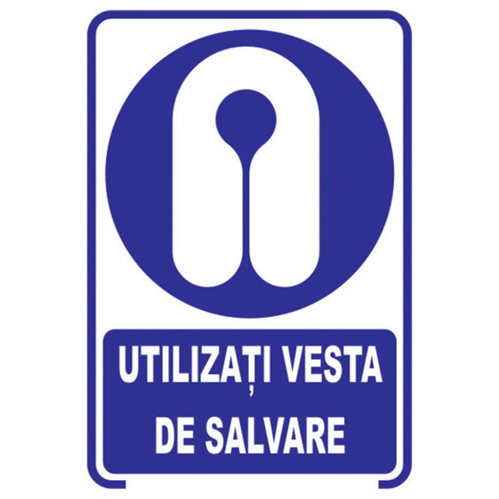 Placuta indicatoare de securitate de obligativitate, utilizati vesta de salvare, Onsec, 200x300 mm, PVC, 1 mm