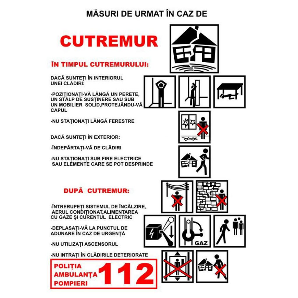 Placuta indicatoare de securitate de prim ajutor si salvare, masuri de urmat in caz de cutremur, Onsec, 200x300 mm, PVC, 2 mm