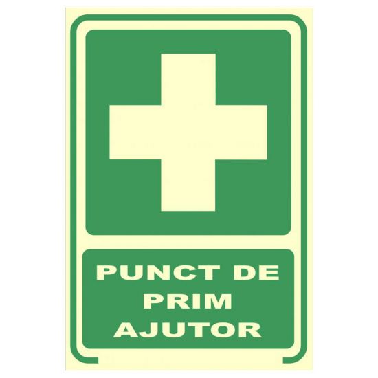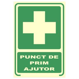 Semne si indicatoare / Placute de prim ajutor si salvare / Placuta indicatoare de securitate de prim ajutor si salvare, punct de prim ajutor, Onsec, 200x300 mm, autocolant vinyl, 0.07 mm