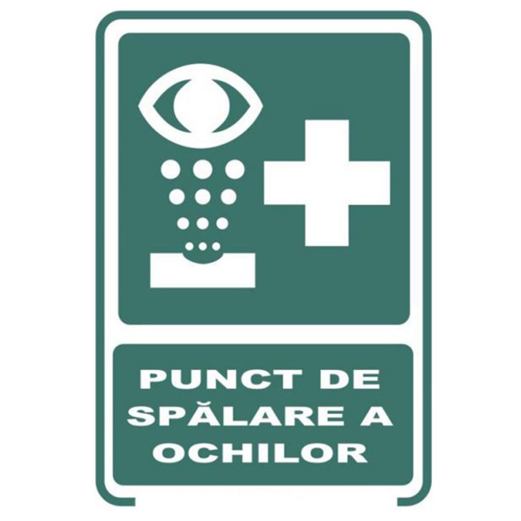Semne si indicatoare / Placute de prim ajutor si salvare / Placuta indicatoare de securitate de prim ajutor si salvare, punct de spalare a ochilor, Onsec, 200x300 mm, PVC, 3 mm