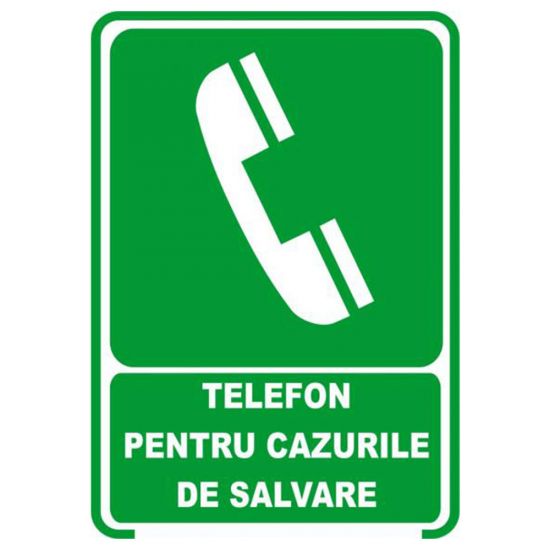 Placuta indicatoare de securitate de prim ajutor si salvare, telefon pentru cazurile de salvare, Onsec, 200x300 mm, PVC, 1 mm