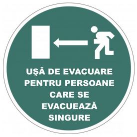 Semne si indicatoare / Placute de prim ajutor si salvare / Placuta indicatoare de securitate de prim ajutor si salvare, usa de evacuare pentru persoane care se evacueaza singure, Onsec, 200x300 mm, PVC, 1 mm