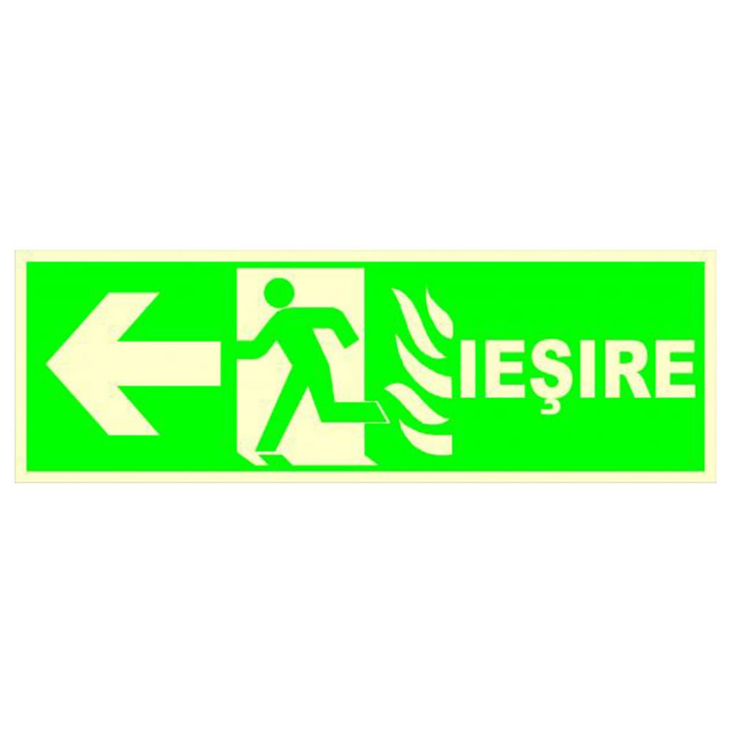 Semne si indicatoare / Placute fotoluminescente / Placuta indicatoare de securitate fotoluminescente, iesire la stanga, Onsec, 200x300 mm, PVC, 3 mm