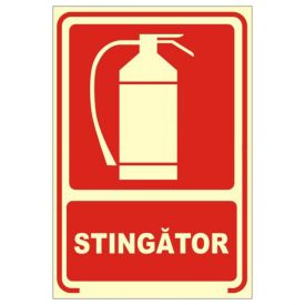 Placuta indicatoare de securitate fotoluminescente, stingator, Onsec, 200x300 mm, PVC, 3 mm