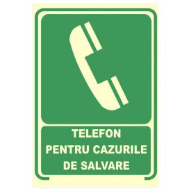 Placuta indicatoare de securitate fotoluminescente, telefon pentru cazurile de salvare, Onsec, 200x300 mm, PVC, 3 mm