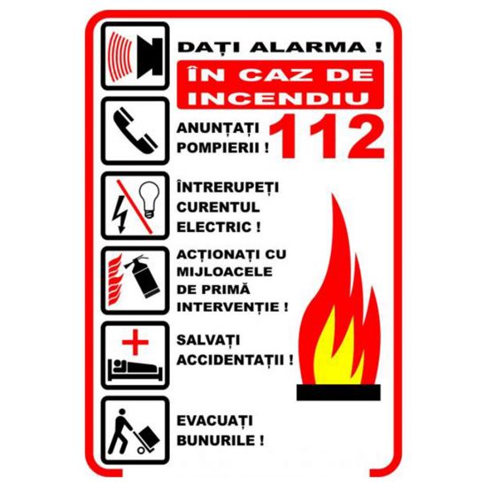 Placuta indicatoare de securitate pentru paza si stingerea incendiilor PSI, dati alarma in caz de incendiu, Onsec, 200x300 mm, PVC, 2 mm
