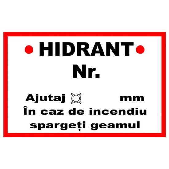Placuta indicatoare de securitate pentru paza si stingerea incendiilor PSI, hidrant nr., Onsec, 200x300 mm, autocolant vinyl, 0.07 mm