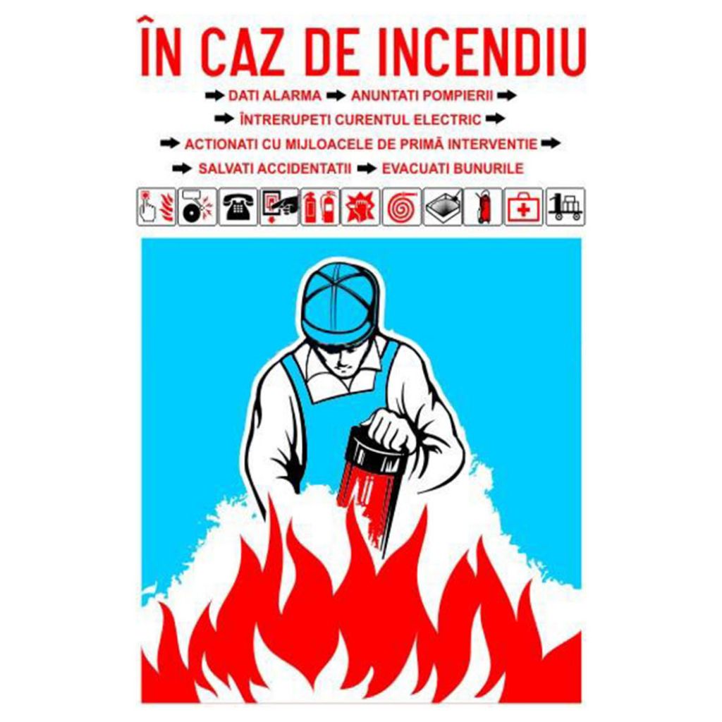Placuta indicatoare de securitate pentru paza si stingerea incendiilor PSI, indicatii in caz de incendiu, Onsec, 200x300 mm, PVC, 2 mm