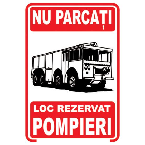 Placuta indicatoare de securitate pentru paza si stingerea incendiilor PSI, nu parcati, loc rezervat pompieri, Onsec, 200x300 mm, autocolant vinyl, 0.07 mm