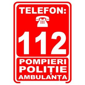 Placuta indicatoare de securitate pentru paza si stingerea incendiilor PSI, telefon 112, pompieri, politie, ambulanta, Onsec, 200x300 mm, PVC, 1 mm